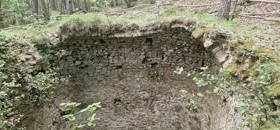 E un pozzo a forma grossolanamente cilindrica con una profondità di almeno una decina di metri e una larghezza di 5, il perimetro costruito in muratura di pietra a secco impermeabilizzata a calce